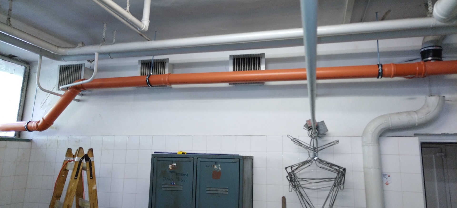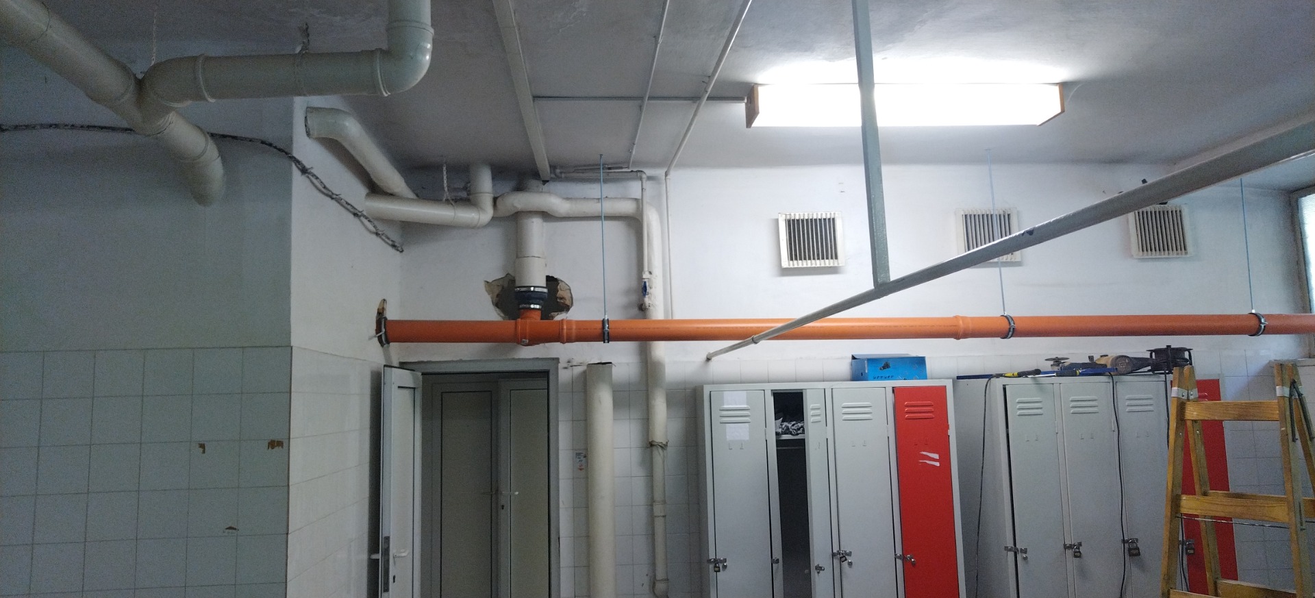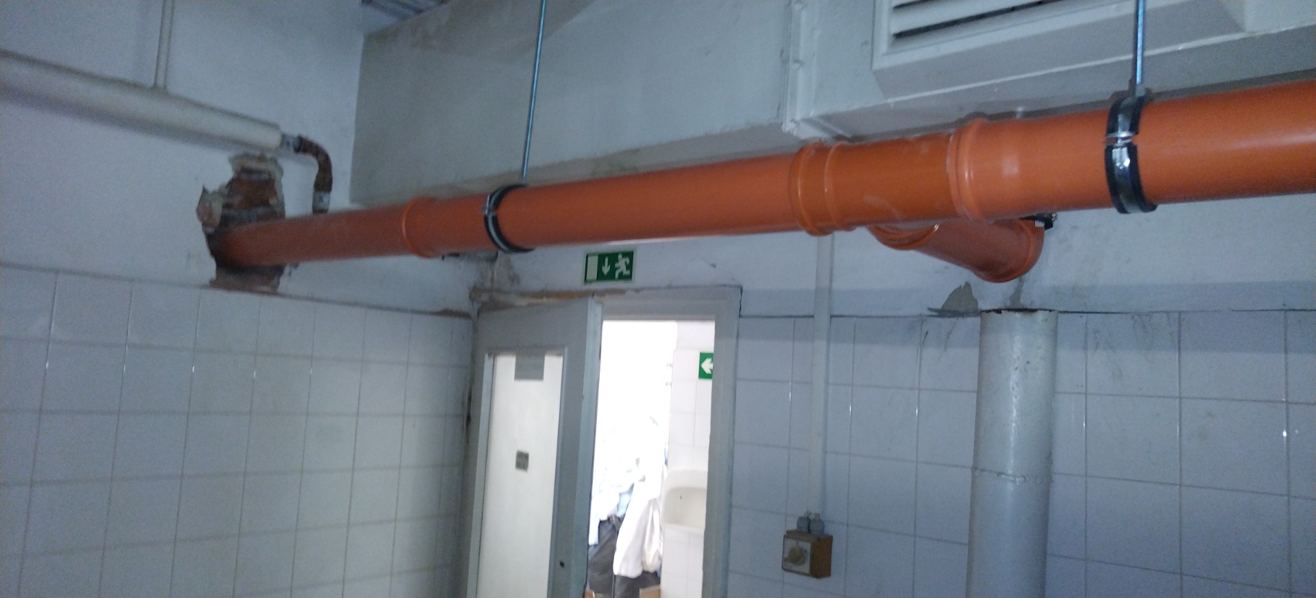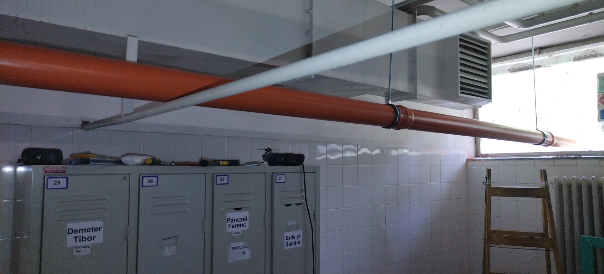 Ez egy szar munka volt. De tényleg. A vastag falú vascsövet nagy vágógéppel vágtam el. 125-ös, vagy 140-es cső volt. Erre mivel a falba, vagy a fal mellett volt, ablakot kellett vágnom, majd kis géppel bent is elvágtam. Tűzjelző volt, így lángot nem nagyon lehetett alkalmazni. A szikra volt a kisebb baj.