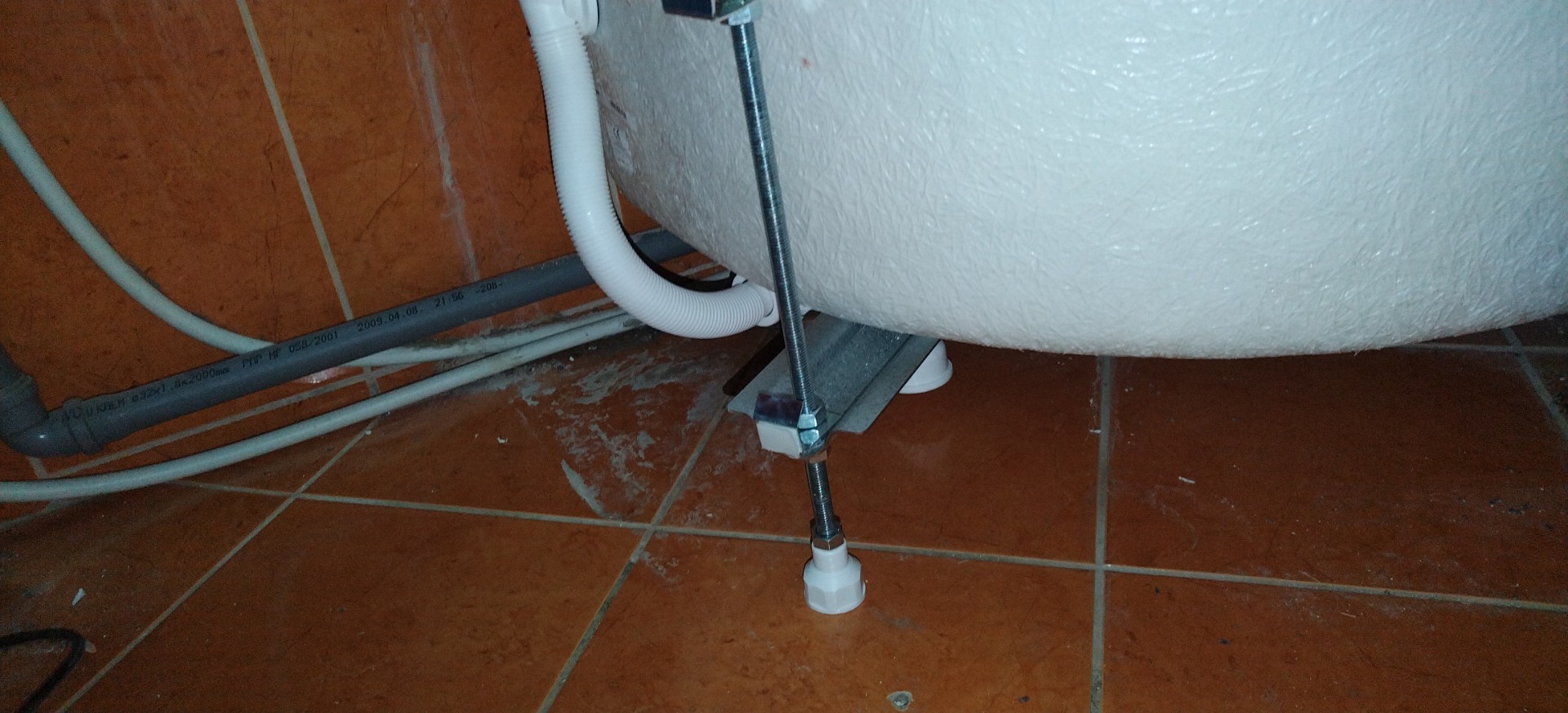 Itt a szennyvíz bekötés. Csak PVC...