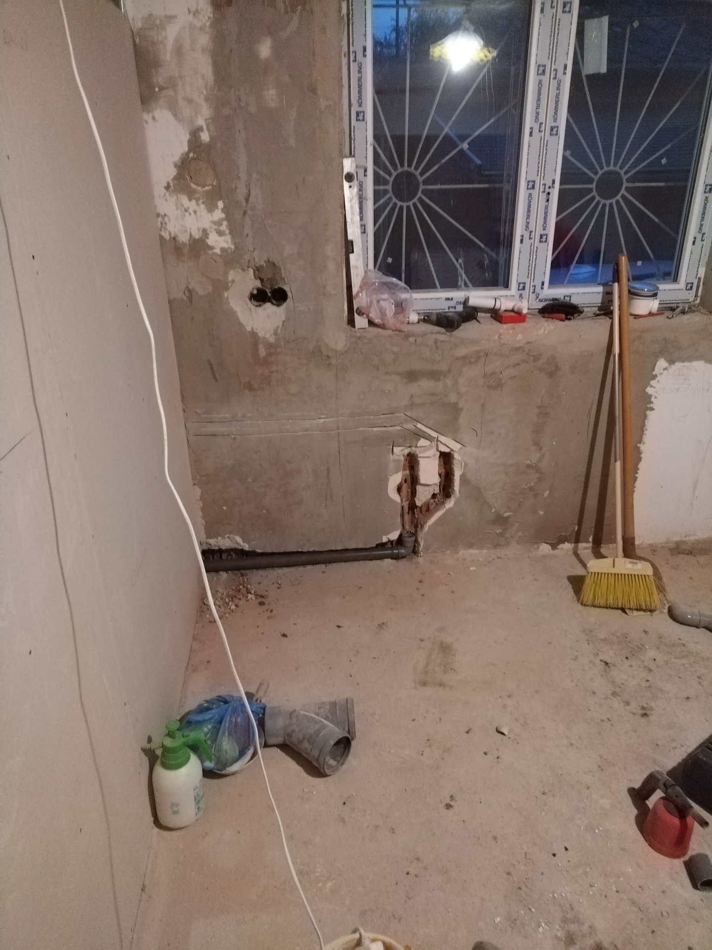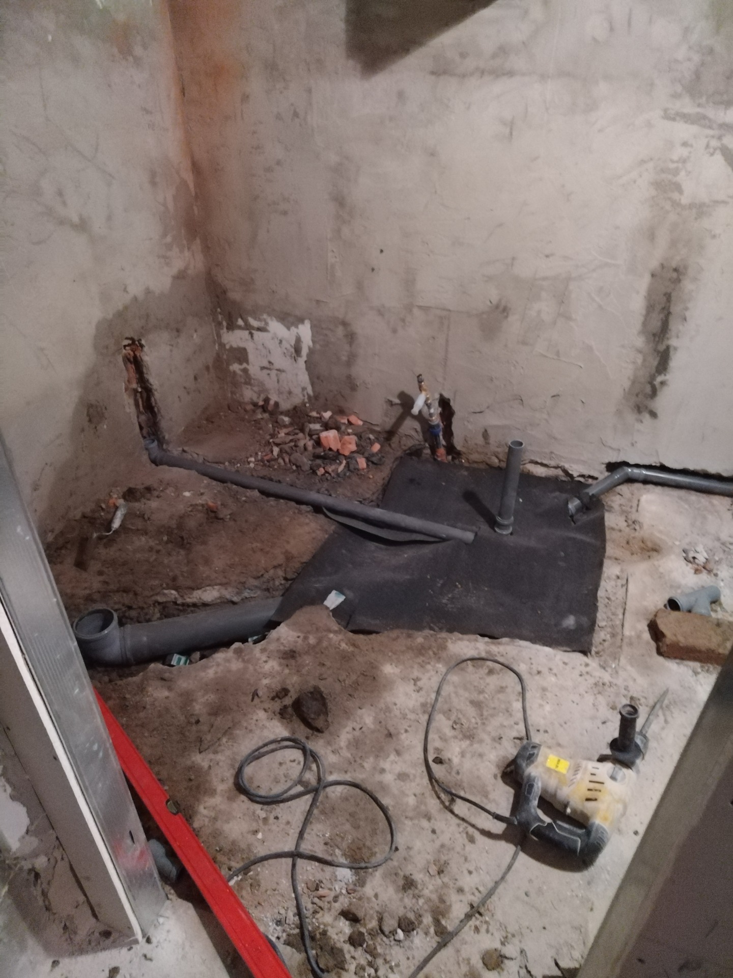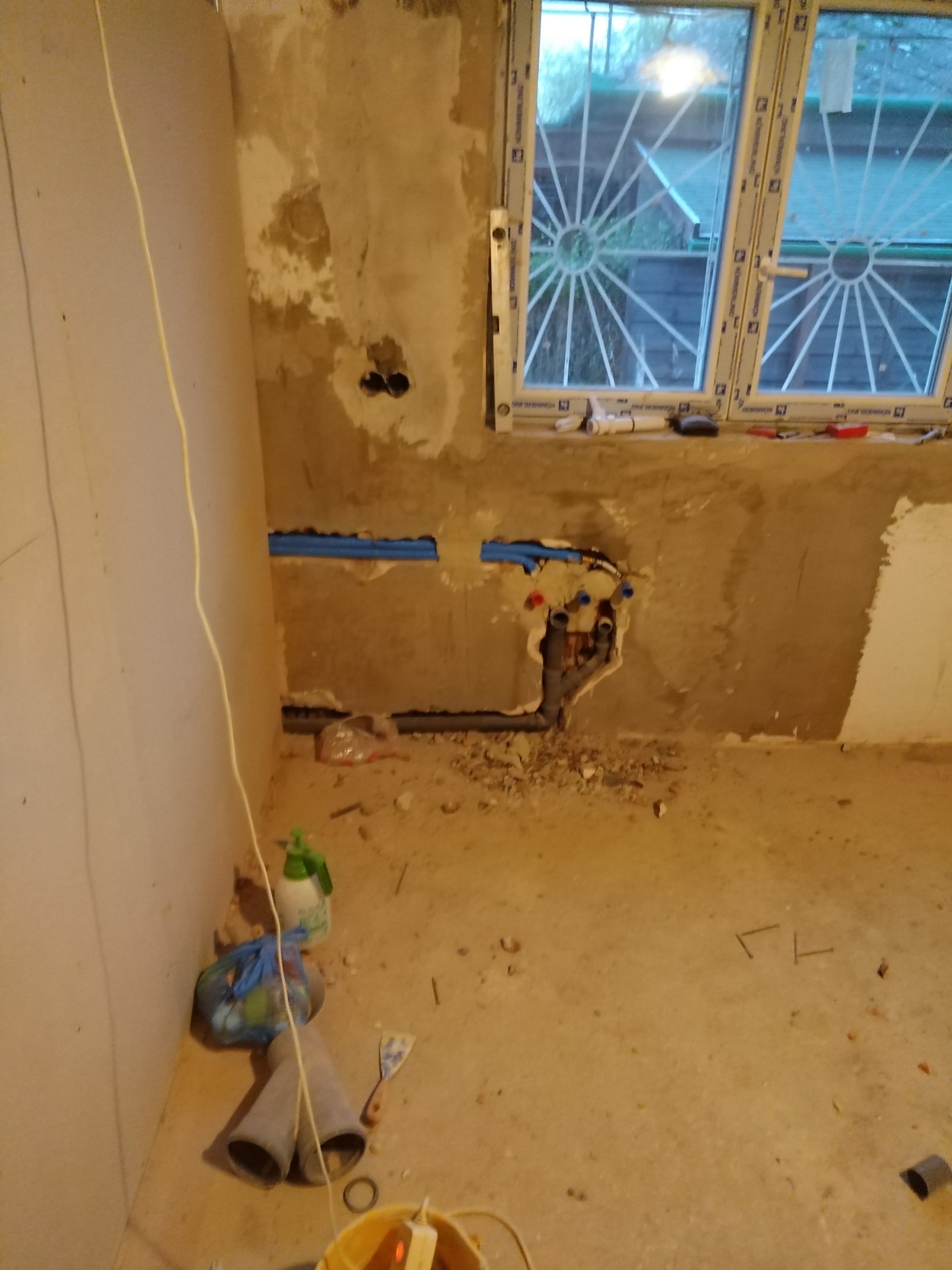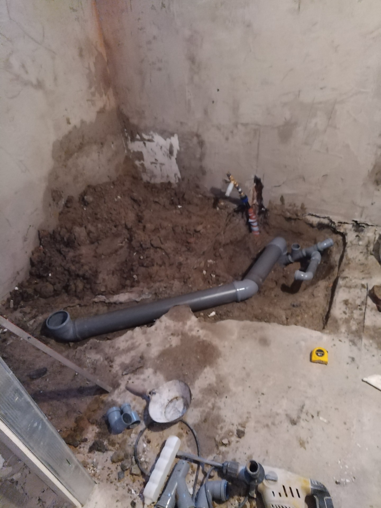 Vízvezeték szerelés, alapig leásva, ahol a víz és a szennyvíz feljött.